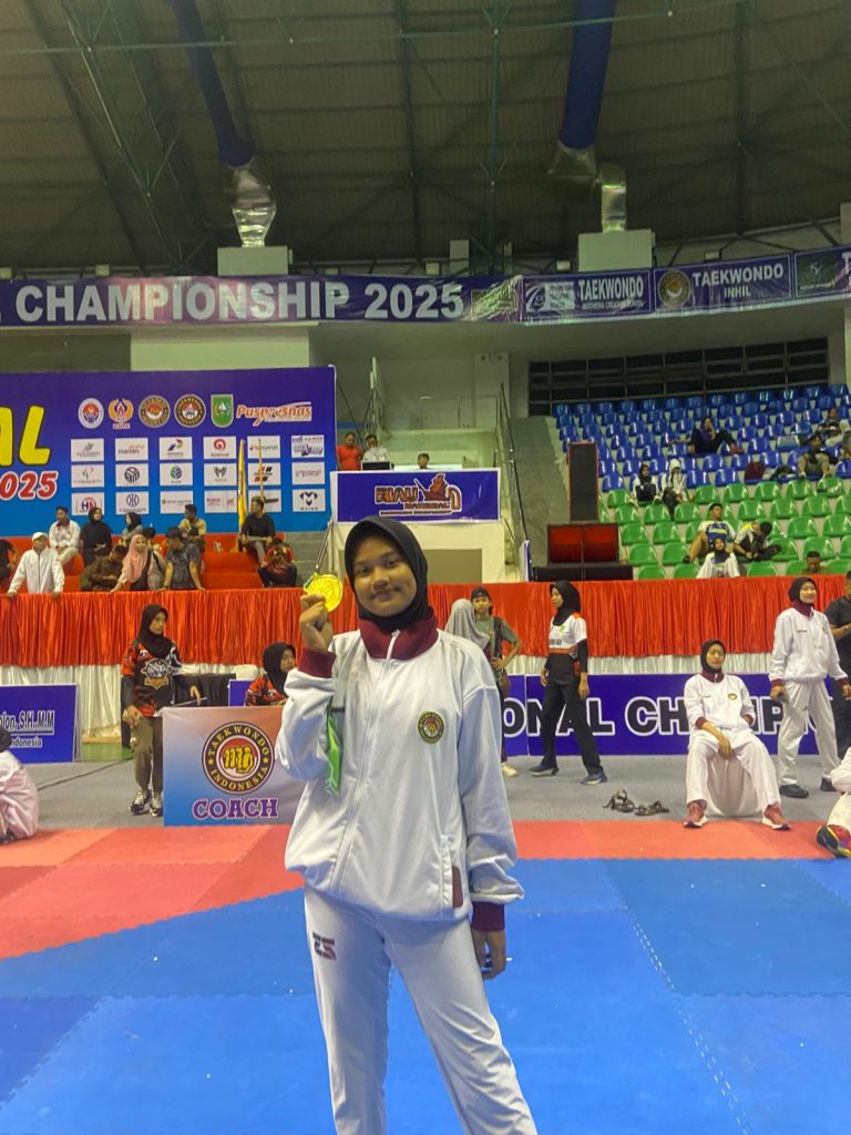 Maulida Angraini, Siswi SMA Negeri 19 Pekanbaru berhasil meraih Medali Emas di Riau National Taekwondo Champions 2025 Kategori Junior Putri