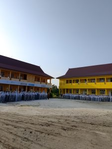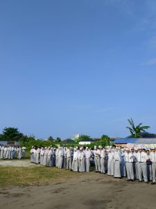 Suasana upacara berlangsung dengan penuh kekhidmatan. Para siswa menunjukkan sikap disiplin dan antusiasme yang tinggi, mencerminkan kesiapan mereka untuk kembali menjalani proses pembelajaran. Kehadiran seluruh majelis guru yang turut mendampingi juga menambah kesan kebersamaan dan kekeluargaan di lingkungan sekolah.